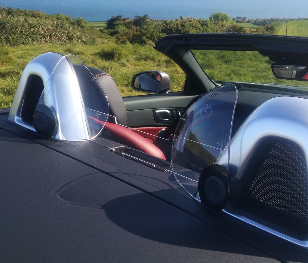 Having previously owned an SLK R171/350 with the OEM Perspex Wind Deflector, I was disappointed with the optional R172 SLK “AIRGUIDE – pivoting, transparent wind deflectors which guides the air right through the middle of the cabin.